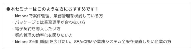 盛況を受け2回目の共催となるこの度のセミナーでは、kintoneとオリジナルプラグインを活用したCRM/SFAアプリテンプレートと一連の業務アプリの構築例から、「GMOサイン」との連携強化におけるベストプラクティスなどをご紹介いたしますのでぜひご参加ください。