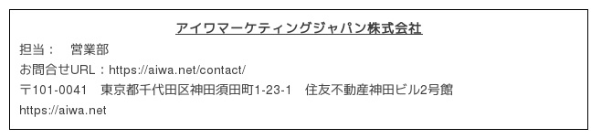 【商 号】アイワマーケティングジャパン株式会社