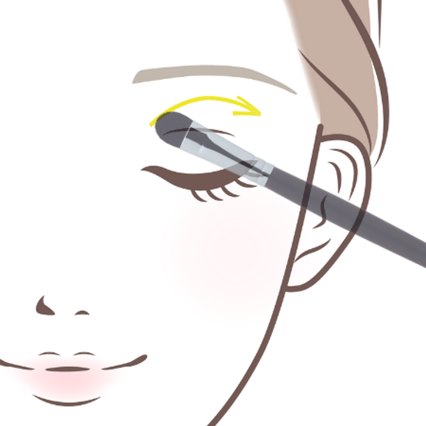目元に立体感をだすブラシです。目元から目尻に向かってアイホール全体をすべらせるようにのせます。複数色でグラデーションを演出したいときは、アイホール用ブラシと分けて細めのブラシを使用することをおすすめします。