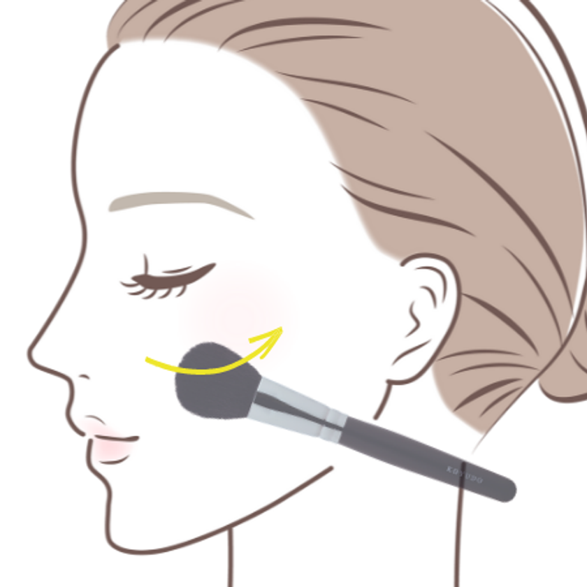 頬に華やかさと顔の立体感をだすブラシです。ブラシに適量のチークカラーをとり、ブラシに角度をつけながら調節します。