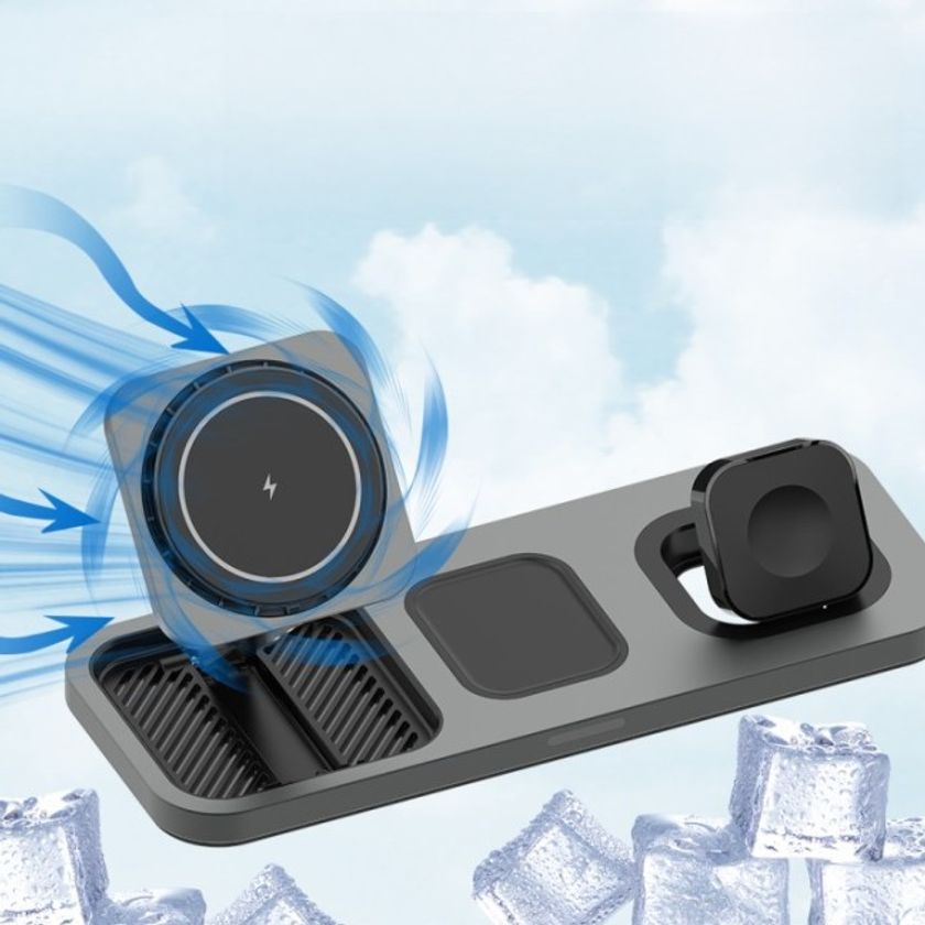 STW Cooling Chargerはスマートフォン、ワイヤレスイヤホン、スマートウォッチを同時に充電可能です。