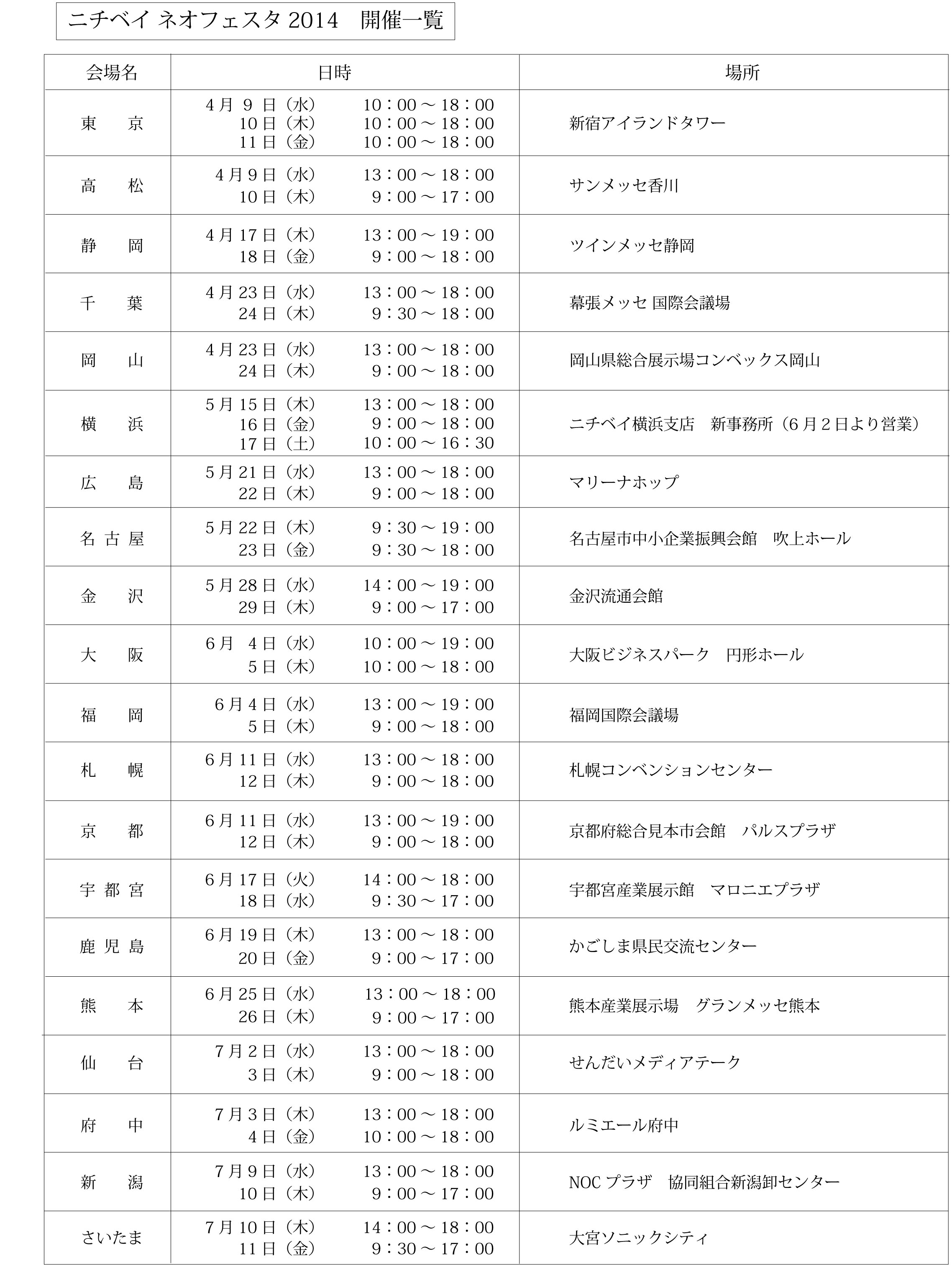 ニチベイ商品発表会「ネオフェスタ2014」開催のお知らせ ―4月より全国20会場で開催―