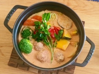 お食事内容:彩野菜とビーフボールの豆乳トマト鍋