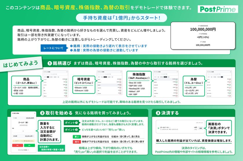 デモ資産1億円からスタートするリスクゼロの投資体験 PostPrime、初心者向け投資シミュレーション機能の提供開始