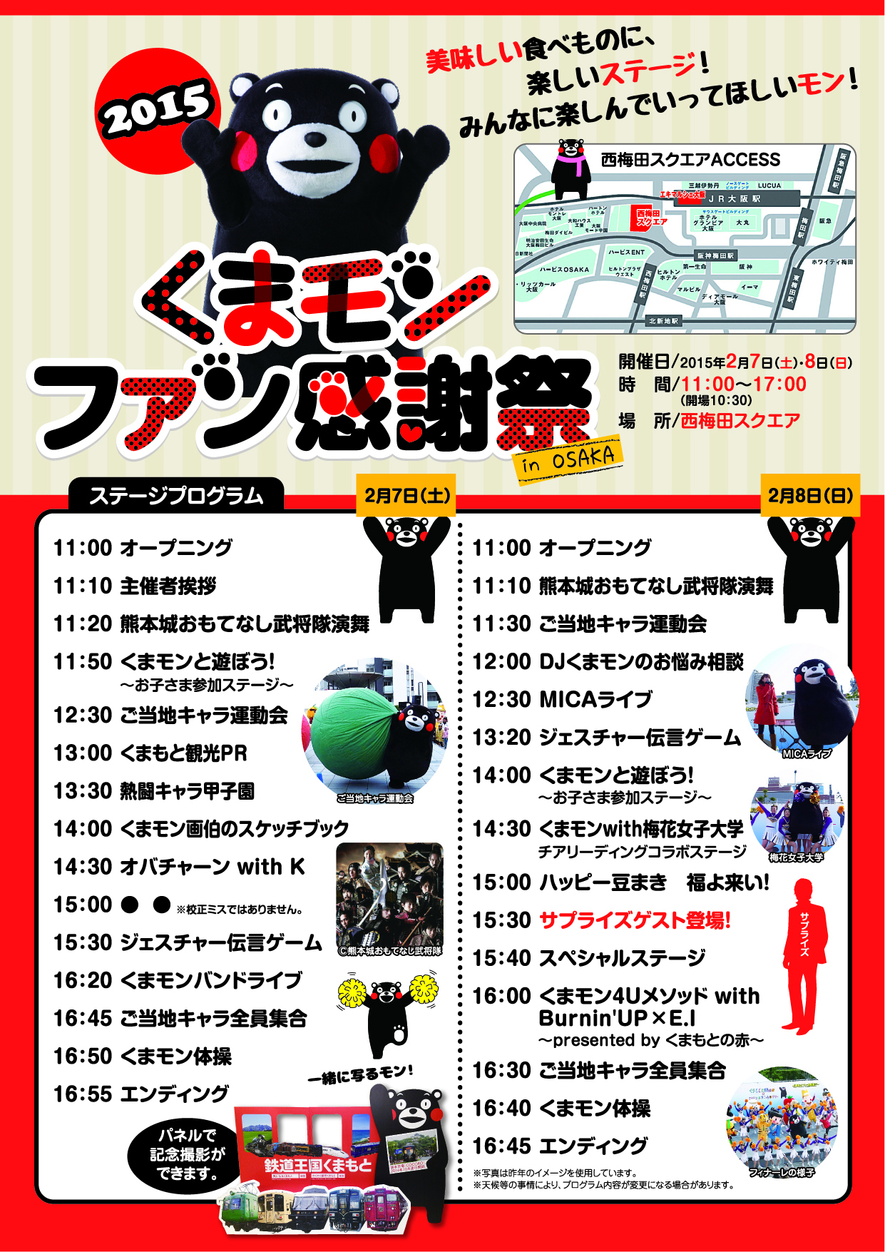 [イベント]くまモンファン感謝祭2015 in OSAKA 西梅田スクエアにて開催決定! 2015年2月7日(土)〜8日(日)、くまもとの魅力を体感!