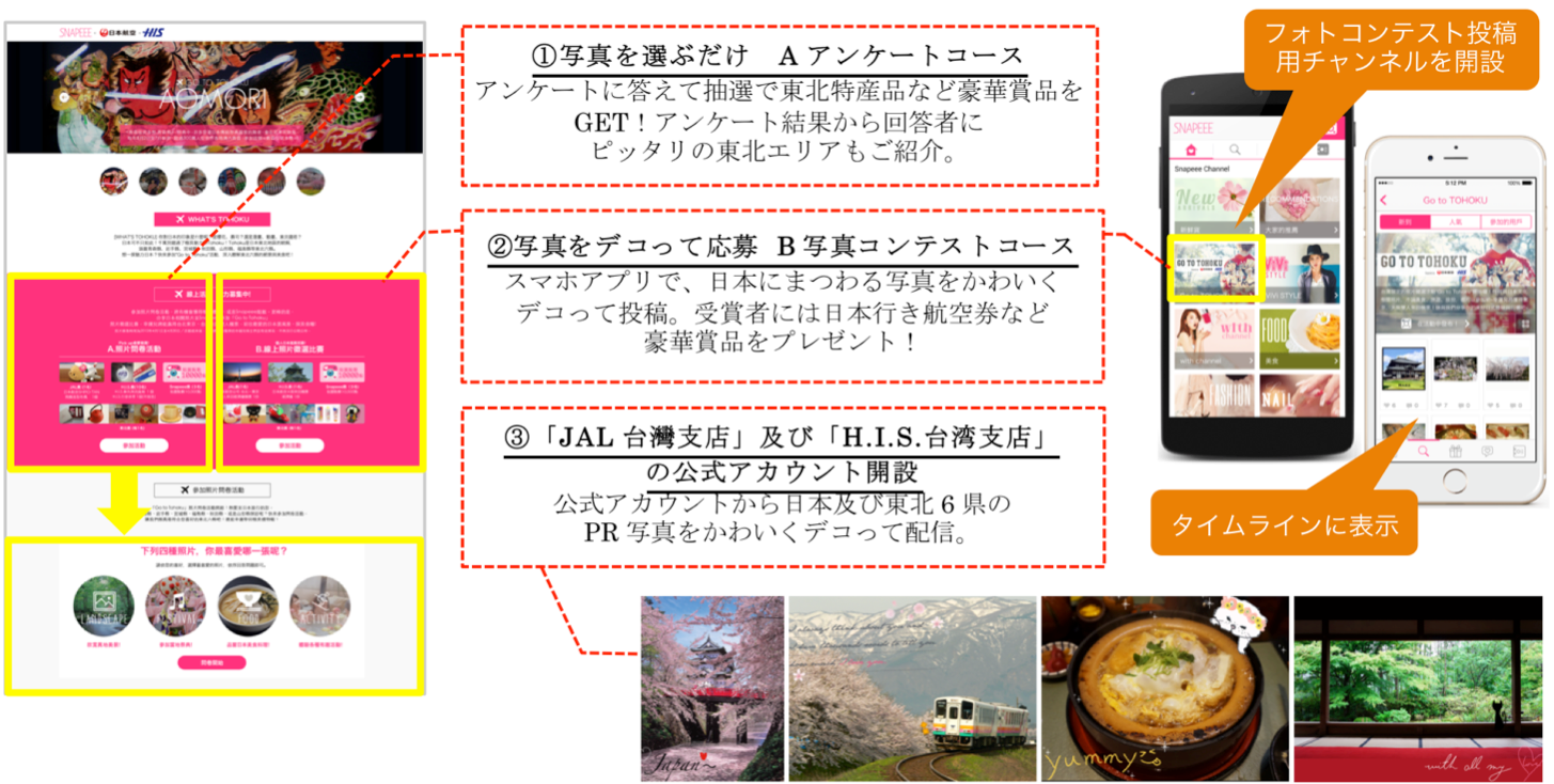 写真共有ソーシャルメディア『Snapeee(スナッピー)』で地方都市活性化!「JAL日本航空台灣支店」「H.I.S.台湾(三賢旅行社)」との初タイアップ企画 増加する訪日台湾人女性をターゲットに「GO TO TOHOKU」キャンペーンを開始