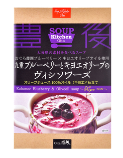 土壌にこだわり、有機栽培で育てた「おぐら農園」の九重ブルーベリーと、完熟オリーブの実だけを搾ったトランス脂肪酸ゼロのオリーブジュース100%オイル<キヨエ>で仕立てたフルーティーな体に美味しいスープです。