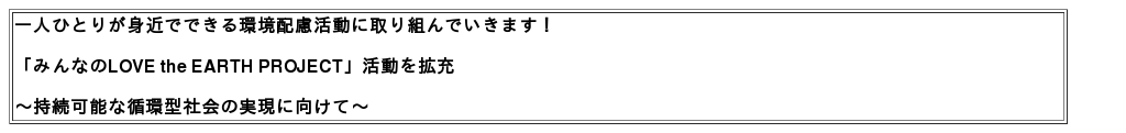 一人ひとりが身近でできる環境配慮活動に取り組んでいきます「みんなのLOVE the EARTH PROJECT」活動を拡充