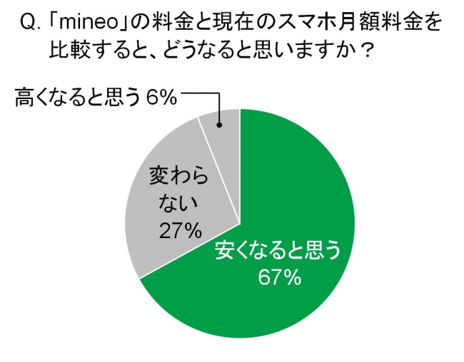 ■ 格安スマホの不安を解消、「mineo」の料金プランに7割が“今より安い”