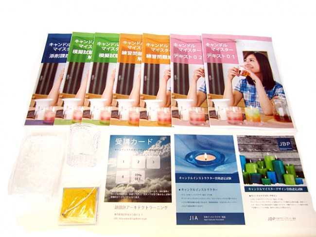 内容:受講証、受講マニュアル、完全攻略テキスト2 冊、練習問題集/解答用紙、練習問題解答集、模擬試験/解答用紙、模擬試験解答集、添削課題/提出用解答用紙、質問用紙、封筒、卒業課題、キャンドル製作セット、卒業課題(※スペシャル講座のみ)