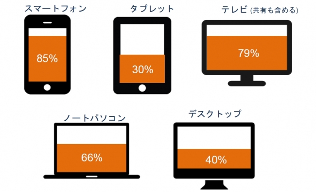 ベトナムは、人口約9,255万人に対して、携帯電話回線数が約1億3,600万回線と、普及率約147%の携帯電話大国でもあり、スマートフォン普及率は都市部ではかなり高いものの、まだ全国区で見れば約40%と今後の伸びしろも大きく、スマートフォン利用者数の伸び率はアジア地域で2位と、今後もスマートフォン関連事業の成長が期待できる市場です。また、デジタルデバイスを所有するユーザーの85%がスマートフォンを保有しており、テレビは79%、パソコンは66%との結果となり、大半のユーザーがインターネットへのアクセスは、スマートフォンから行っている状況と言う結果に至りました。(情報提供元「Asia Plus Inc.」ベトナム人20代若者の生活調査)[画像3: https://prtimes.jp/i/24995/1/resize/d24995-1-295048-2.jpg ]