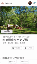 ExCAMPは、 自分にあったキャンプ場を検索する、 地図を見ながら直感的に探すことも可能です。 また自分が行った、 行きたいキャンプ場をログとして残すことも可能ですので、 キャンプ場を探したい時はもちろん、 時間が空いた時に行きたいキャンプ場をリスト化するなどの用途でも利用できます。