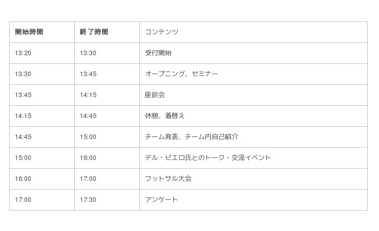 株式会社C-mind(所在地:東京都新宿区/代表取締役虎石 克)は、2018年9月22日(土)にフィスコフットサルアレナとしまえん(東京都練馬区)にて、元サッカーイタリア代表のアレッサンドロ・デル・ピエロ氏をお招きし「キャリスポ」を開催いたします。「キャリスポ」とは、キャリア×スポーツをコンセプトにした新卒学生向け就活イベントで、スポーツを通じた就活生同士の交流や、現役人事担当者によるセミナー、就活相談会などを行っております。