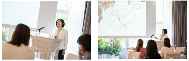 まずはファンケル化粧品事業部の田村ひとみさんによる、新しい2つのスキンケアの説明や、今後のプロモーション情報などを伝えるプレゼンテーション。