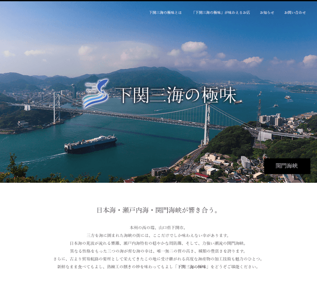 この三つの海から水揚げされた魚介類を用いた料理や海産物を多くの方に味わっていただきたく「下関三海の極味」と名付け、専用サイトを公開しました。今後、「下関三海の極味」が味わえるお店や開発商品等を提供していく予定です。