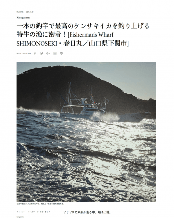 漁猟から調理、その食べ方まで、細部にわたる取材とともに表現にもこだわって記事にしていきます。1回目の特集は「イカ」、11月には「クエ」、「ウニ」を掲載。冬のシーズン到来とともに、「ふぐ」、「さわら」、「のどくろ」を特集する予定です。この特集は、「下関三海の極味」オフィシャルサイトからもリンクしています。