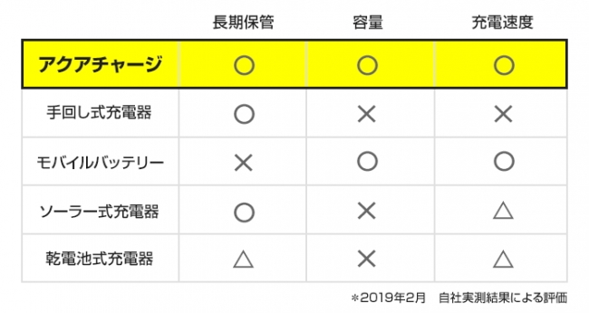 藤倉コンポジット株式会社が、2019年5月29日(水)より新発売する「アクアチャージ」は、いざという時に水だけで充電ができる非常用モバイル充電器です。コップ1杯の水があれば、避難先でも確実にスマホの充電をすることができます。