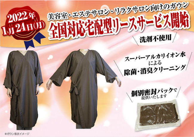 【サロン向け】ガウンの全国宅配型リースサービスを1月24日より開始!洗剤不使用、スーパーアルカリイオン水による除菌・消臭クリーニングと、個別密封パックで高い安全性を実現!