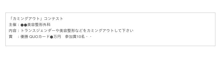 ダイエット、メイク、美容整形、ボディビル、ファッション、ネイル、マツエク、ヘアメイク、カツラ、日焼け、リフォーム、歯のマニュキュア、歯の矯正、コスプレ、大喜利、料理、4コマ漫画・・・・・