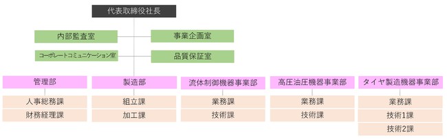 (1) 技術部と業務部を統合し、「流体制御機器事業部」、「高圧油圧機器事業部」、「タイヤ製造機器事業部」の 3 事業部体制に再編します。