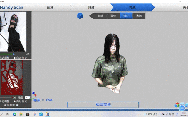 しかし、「Sense Pro Max」は工業用レベルの0.1mmの高精度スキャンだけで無く、3Dスキャナー最大の課題であった黒色や細い物までスキャンが可能に。それにより、人物の髪質まで高精度で3D化する事に成功しました。