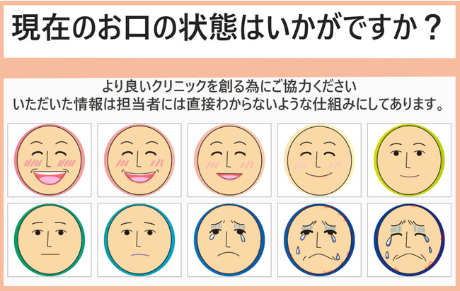 PLUM STANDの特徴は、フェイススケールによる患者満足度アンケートを毎回とれることです。治療後の患者さまの、リアルな感覚を知ることが可能です。