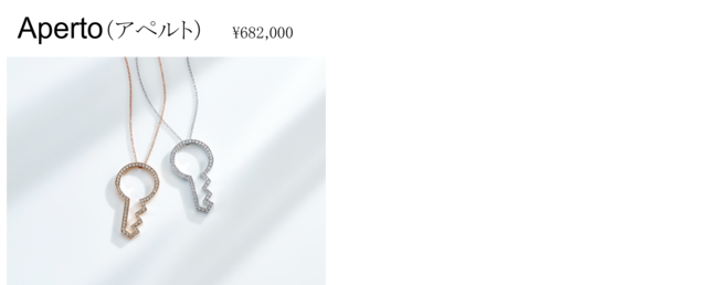 ローンチ時のラインナップとしてカギモチーフを多く採用しているのは、あなたの心の扉を開けるジュエリーでありたいというADOROの思いを表しています。