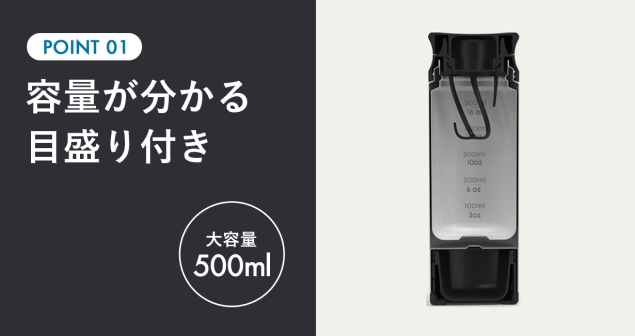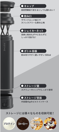 6つの機能を兼ね備えた、革新的な「シェイカーボトル」です。