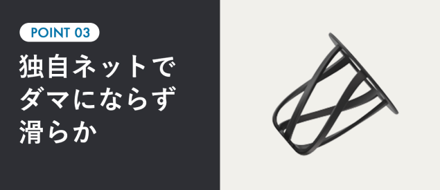 FORME社独自のシェイカーネット。ダマになりやすい粉末サプリメントもわずか数秒でダマにならず滑らかになります。