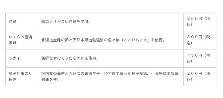 そして、グランドオープンにあわせ、当社の人気商品である海苔「優雅」を使用した「おにぎり」の販売を開始いたします。