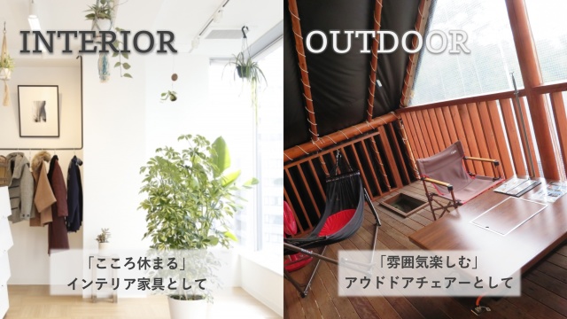 インテリア家具・アウトドアチェアとして、様々なシーンで活躍。