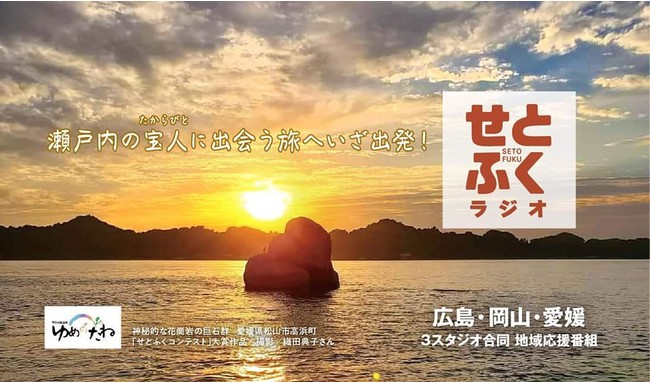 感染症流行などの影響により、なかなか瀬戸内地域に来られない方のために、瀬戸内感を味わって頂きたい 瀬戸内で頑張る方を応援したい、そんな想いで瀬戸内応援ラジオ番組「瀬戸内福めぐり せとふくラジオ」を2021年新春/秋季シーズンの2クールに渡り放送してきた。(2022年シーズンも6月から放送予定)
