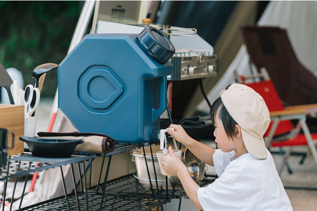 本製品は、今までにないデザインと機能をもつウォータータンクとして、アウトドアシーンだけでなく、「生活に馴染む防災」をテーマに全く新しい価値観を提案します。