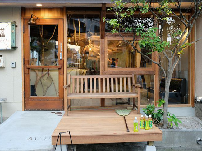 重厚感のある扉をテーブルとしてアップサイクル。このほかにも、歴史を紡いだ扉が各地のゲストハウスや美容院などでお客様をお迎えしています。