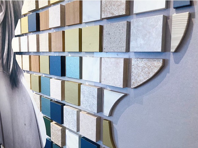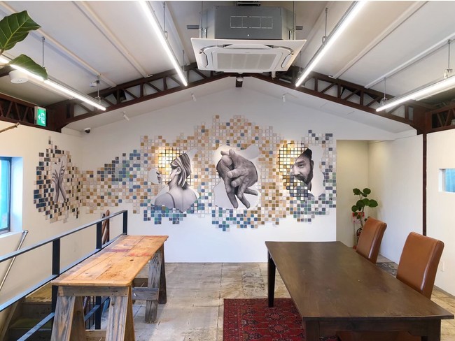 ファッションデザイナー兼アートディレクターの鷺森アグリさん監修により、現場で余ったダイノックシートの端材をアップサイクルして壁面アートに。