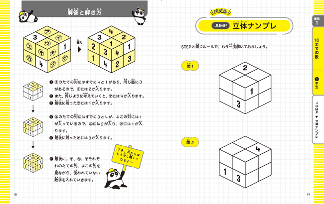 STEP・JUMPではパズル問題に挑戦!STEPでは基本のパズルに、JUMPでは応用編のパズルに挑戦するので、問題がレベルアップしていき、いつの間にか算数力も身についています。