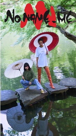日本の情緒溢れる景色をバックにNONAME_MEのストリートスタイルがうまく融合したヴィジュアルルックとなった