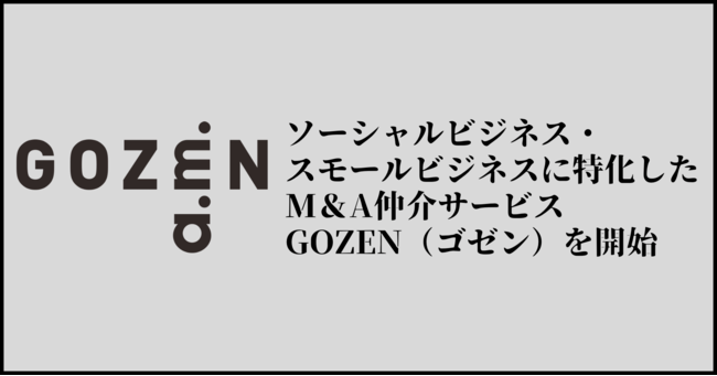 ソーシャルビジネス・スモールビジネスに特化したM&A仲介サービスGOZEN(ゴゼン)をサービスローンチ