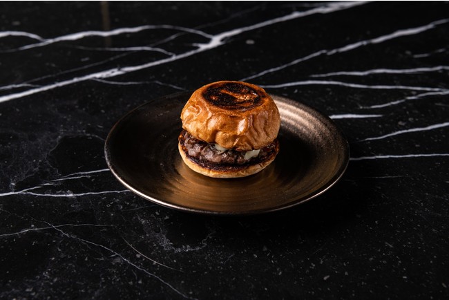一口サイズのミニハンバーガー。ハンドカットの100%ビーフのパティに特製のオニオンソースとマヨネーズを使用。お酒と一緒に楽しめる一品です。