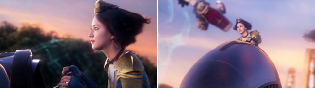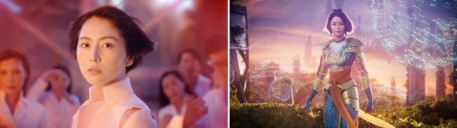 濃密な3DCGで表現された異世界で長澤さんがガンダムと躍動する、