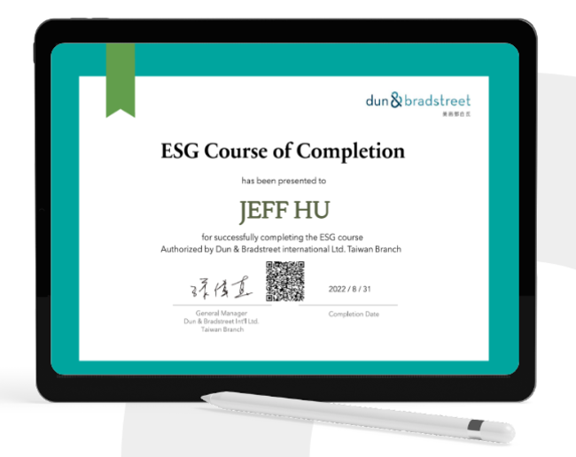 台湾の金融監督管理委員会は2023年より資本金が1000万円を超える上場企業に対して脱炭素等ESGの取り組みにより力を入れるため、企業に炭素調査など、指定した環境調査の実施や報告書類一式の作成及び提出を要求するとした。また企業から提出された資料に関しては検査機関をいくつか設け、段階を分けて検証すると発表した。そこで米国大手のダン&ブラッドストリート社はTuring Internationalとタッグを組み、高いブロックチェーン技術を利用した電子証明書サービスの利用を開始した。これによりダン&ブラットストリート社は、社内で使用するあらゆる証明書類やP D F書類などをワンクリック且つワンストップで発行、管理、認証出来るようになる。