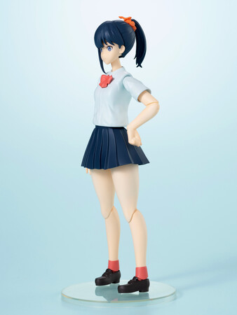ポニーテール用の髪パーツ、半袖シャツ用の胴体、腕、スカートが付属しており組み替える事で再現可能。