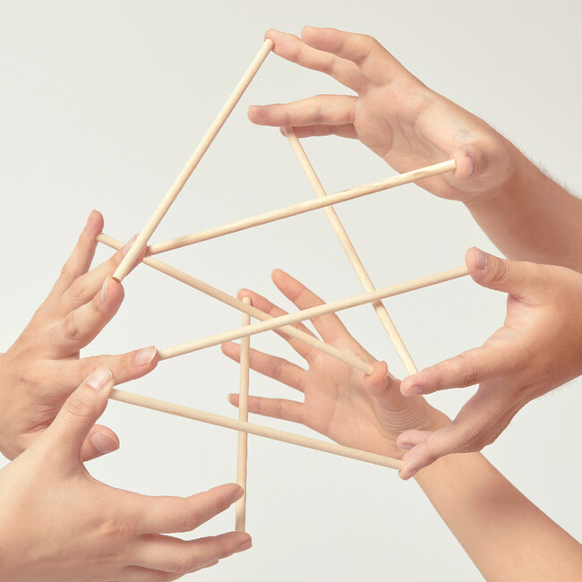 つなぐをテーマに制作を行うコミュニケーションデザインコレクティブ。触手話からできた「LINKAGE」、触覚のさわり心地で遊ぶ「たっちまっち」、ゆびで巡る「たっちコースター」を開発。ふれる・ものや人との関わりを起点にサインシステムやゲームを制作している。(たばたはやと、高橋鴻介、和田夏実、井戸上勝一、木村和博)