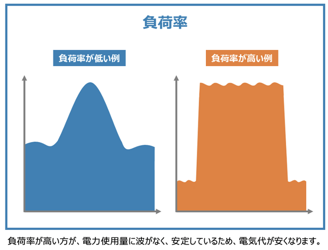 これは電力会社が、急激に電気使用量が増えると電力を賄えなくなる可能性があるため、電力の使用量が安定している施設を優遇しているためで、負荷率が高い(電気の使用が安定している)ほど、電気代が安くなる仕組みとなっています。