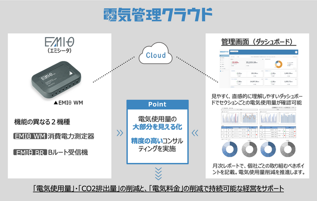 電気使用量の見える化とコンサルティングで使用量とコスト削減を実現するサービス「電気管理クラウド」電気使用量計測のための独自のIoTセンサー「EMIθ(エミシータ)」投入で企業の持続可能な経営をサポート