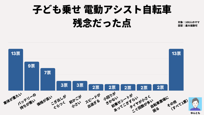 電動アシスト自転車は子どもを乗せて気軽に出かけられるメリットがある一方、車体の重さをネックに感じているママが多いことが明らかになりました。