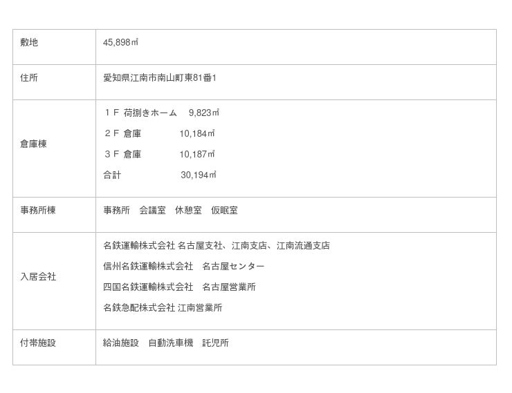 【名鉄トラックターミナル中部の概要】