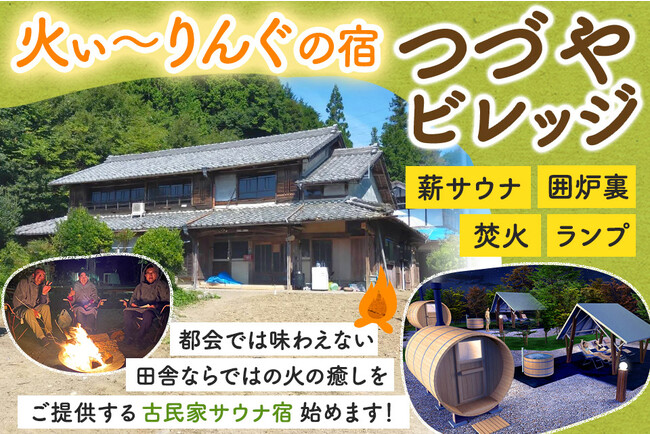 株式会社シーブリッジ(岐阜支社: :岐阜県美濃加茂市 代表:天池 鋭男)は、2023年4月23日 ホタルの里として知られる岐阜県美濃加茂市三和町廿屋(つづや)で、築120年の古民家を存続再生させるクラウドファンディングを開始。公開5日目で支援金額170万円を突破しました。薪サウナで小川のせせらぎと満天星空でととのい、焚き火や囲炉裏の“火の癒やし”を味わう 都会には無い”大自然と戯れる”古民家サウナ宿「つづやビレッジ」を2023年5月12日にプレオープンします。
