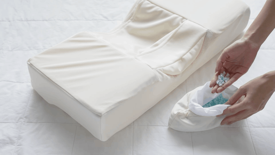枕の3ヵ所を5つのパーツでカスタマイズして高さを変えられる機能性枕