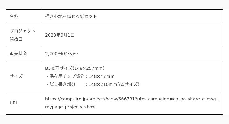 丸楽紙業株式会社(本社:大阪市中央区、代表取締役:杉山喜久尚、以下 丸楽)は、描き心地を試せる紙セットを、2023年9月1日(金)からCAMPFIREにてクラウドファンディングを開始します。